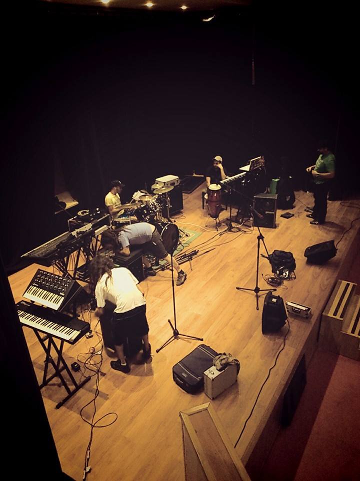 echo-reverb-alhaurin-2014-05-08Centrándonos en el concierto, cabe mencionar que dada la ingente cantidad de procesadores analógicos que usan la práctica totalidad de los músicos, resultó complicado adaptar y acoplar el personal sonido de la banda al auditorio del Centro Cultural, acostumbrado a otro tipo de performances. Tras una ardua prueba de sonido, dio comienzo el show.