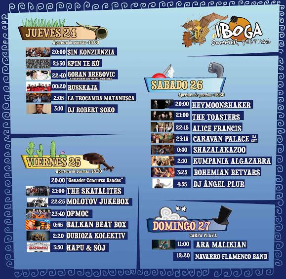 El festival de música balkan, ska y swing Íboga Summer Festival dará el pistoletazo de salida a su segunda edición el próximo jueves 24 de julio en la playa de Cullera (Valencia) con la llegada de más de 5.000 visitantes que ocuparán un espacio de 50.000 metros cuadrados habilitados en la zona de la Bega-Port. El evento musical concluirá el domingo 27 de julio con la actuación gratuita del violinista Ara Malikian y cuenta con un cartel en el que destacan los nombres de Goran Bregovic, The Skatalites, Molotov Jukebox, Balkan Beat Box, The Toasters o Alice Francis.Quedan menos de 1.000 abonos para completar aforo Íboga Summer Festival arranca este jueves con más de 5.000 visitantes en la playa de Cullera .