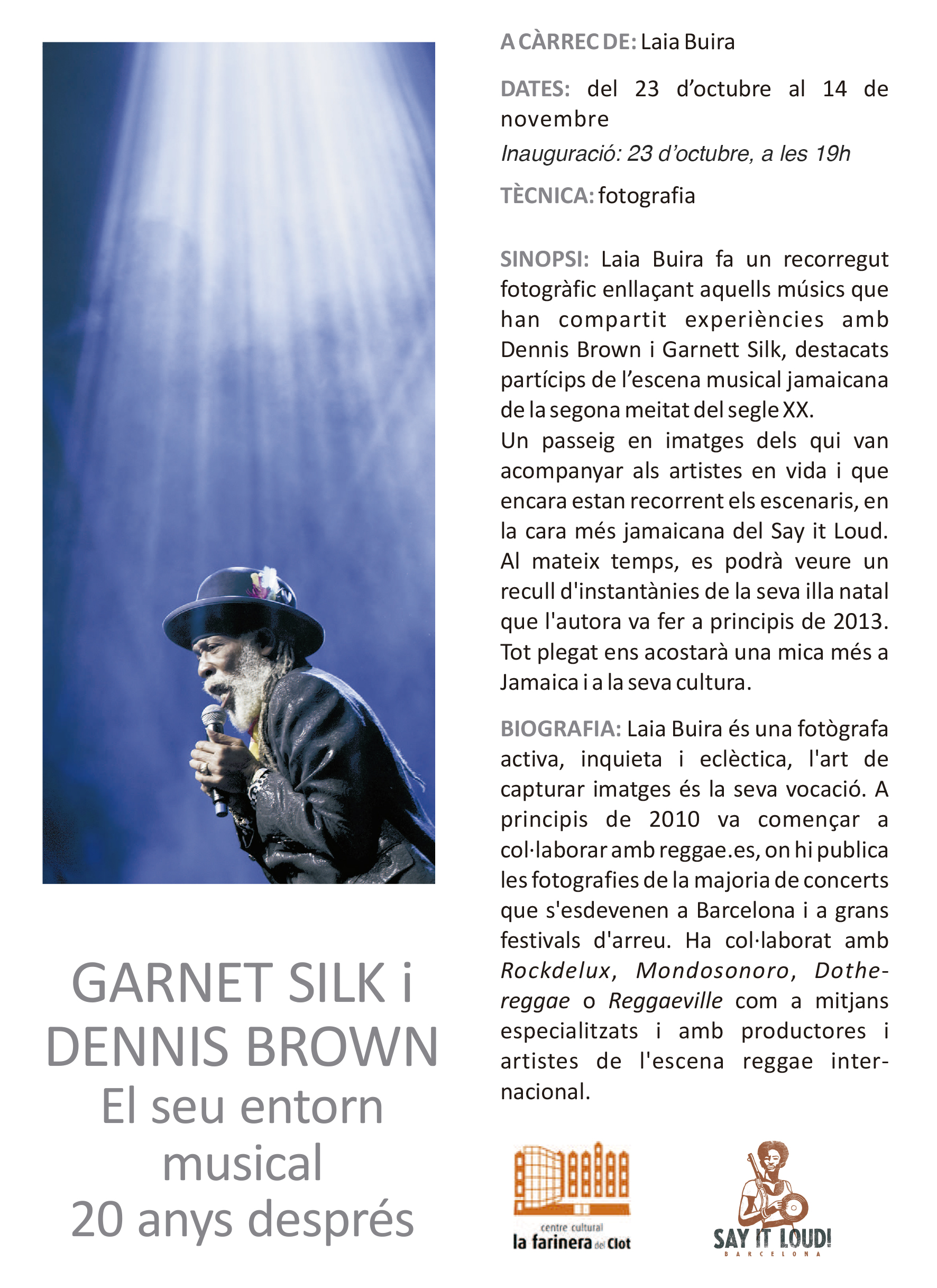 expo-laiaDentro de la programación del ciclo de música negra Say it Loud de este año, Laia Buira ha sido invitada a mostrar parte de su trabajo en una exposición de fotografía musical titulada: ‘Dennis Brown y Garnett Silk: Su entorno musical, veinte años después’.