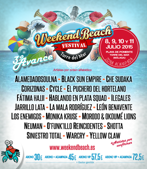 El Weekend Beach ataca de nuevo y ya van tres avances de cartel a cuál más gustoso, ecléctico y con grandes nombres anunciados. Refrescando que el se celebrará en pleno apogeo del verano, del 8 al 11 de julio y en uno de los rincones playeros más ambientados de la Costa del Sol, la organización apunta hacia arriba y vuelve a anunciar nuevas confirmaciones.