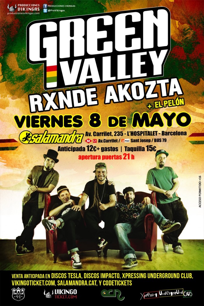 El viernes 8 de mayo GREEN VALLEY presenta su nuevo disco “Hijos de la tierra” en la sala Salamandra de Hospitalet de Llobregat. Tercer trabajo discográfico que confirma la firme evolución como grupo de referncia en el panorama estatal. Mezclado por Roberto Sanchez, Muzik y para el cual han contado con la colaboración de Lasay, Rayden, El Piezas, Rapsusklei y Fermín Muguruza.