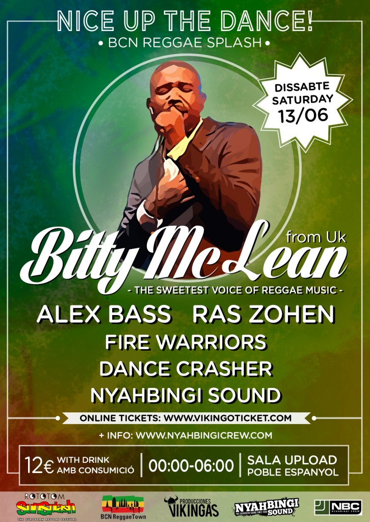 Aterriza en Barcelona una de las voces más respetadas del reggae internacional… directamente desde Uk: Bitty McLean! Será el próximo sábado 13 de junio en la sala Upload del Poble Espanyol en una fiesta que empezará a las 00h y se alargará hasta las 06h de la madrugada. Le acompañarán en el escenario Alex Bass, Ras Zohen, Fire Warriors, Dance Crasher y Nyahbingi Sound. Por sólo 12 euros con consumición disfruta de las mejores vibes jamaicanas de la ciudad condal!