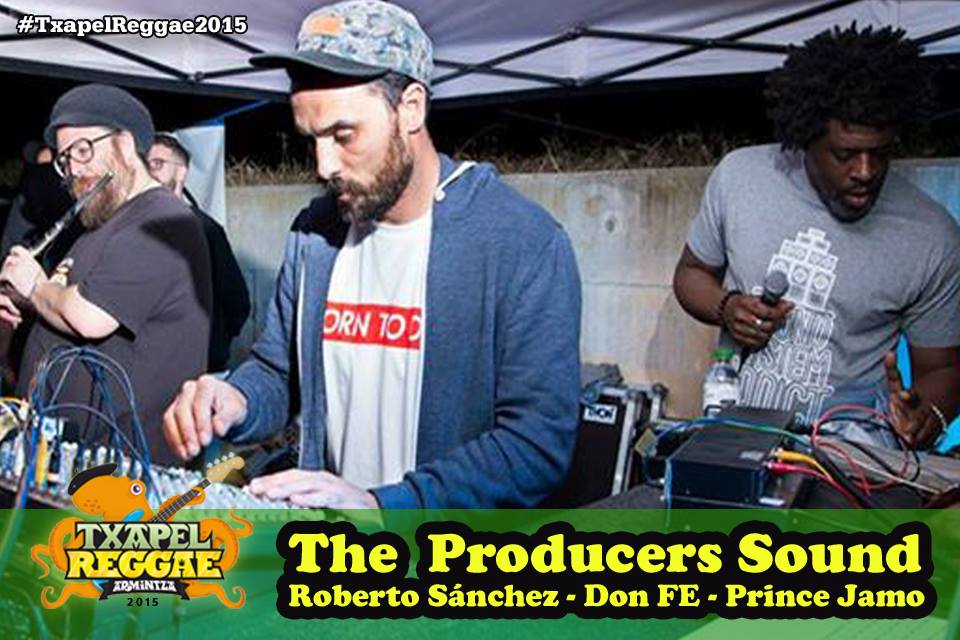 txapel 2015la orla de la playa de de Armintza acogerá en el vigésimoquinto aniversario de Txapel Reggae  a los componentes de la banda The producers: productores y “reggaeactivistas” Don Fe, Dubby Ambassah, Genis Trani, Roberto Bartolomé, Marcos Rozas y Roberto Sanchez.