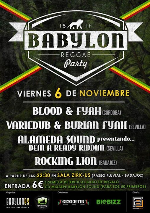 El 6 de Noviembre en Badajoz tendrá lugar el 18 Babylon Reggae Party en la sala Zirk Us, a partir de las 22:30 horas.