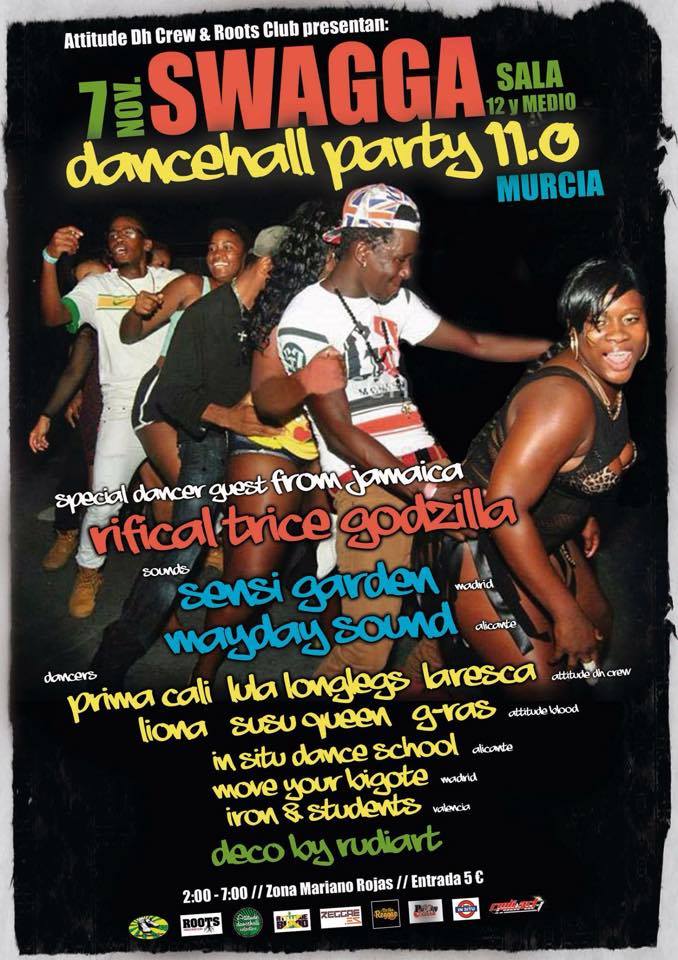 El 7 de Noviembre a partir de las 02:00 de la madrugada tendremos en Swagga Dancehall Party 11.0 a uno de los dancers de Rifical Team desde Jamaica Rifical Trice aka Godzilla nos acompañará esta noche y será el primer dancer jamaicano que pise la ciudad de Murcia.