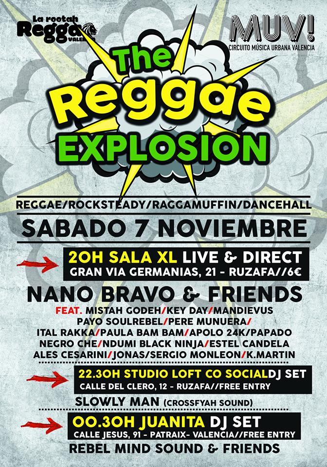 El Sabado 7 de Noviembre tendrán lugar 3 eventos en 3 lugares diferentes, en lo que será The Reggae Explosion Party en Valencia.