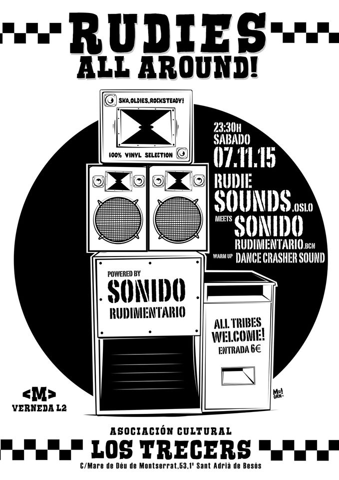 La Asociación Cultural Los Trecers junto a Sonido Rudimentario presentan el sábado 7 de Noviembre Rudies All Around en la Asociacion Cultural Los Trecers de Sant Adria del Besos, Barcelona.