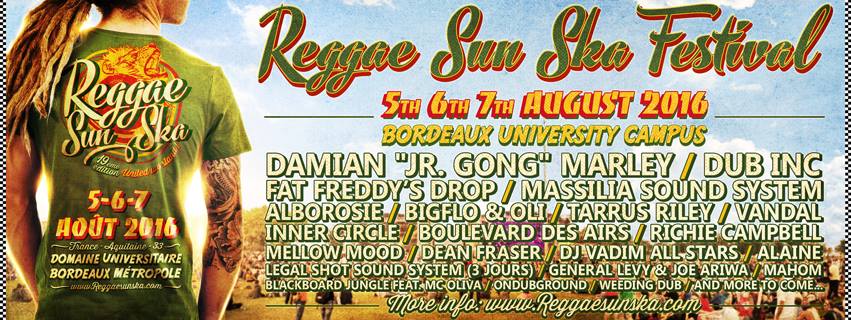 Reggae Sun Ska se celebrará los días 5, 6 y 7 de Agosto de 2016 en Burdeos e incluirá varias áreas temáticas.