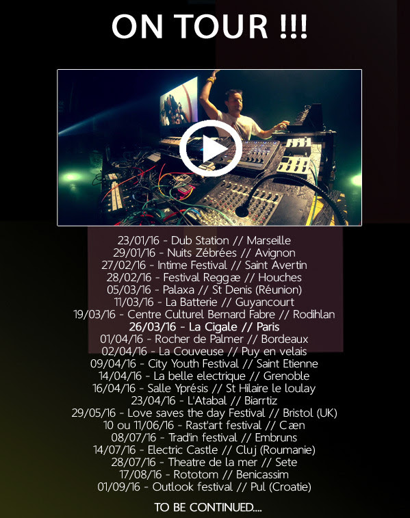 Además anunciamos gira por Francia. Estamos cerca y no hay excusa para los que aman el digital. Un show diferente donde el artista plantea sus riddims en directo, con actuaciones de los artistas que le acompañen o videos. Una propuesta novedosa es interactiva.