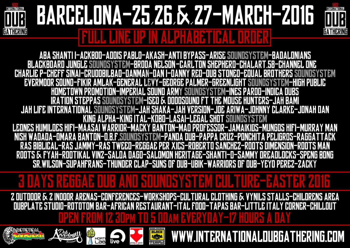 El punto de encuentro para todos los amantes del reggae a través del sound system, los próximos 25, 26 y 27 de marzo de 2016, coincidiendo con Semana Santa.