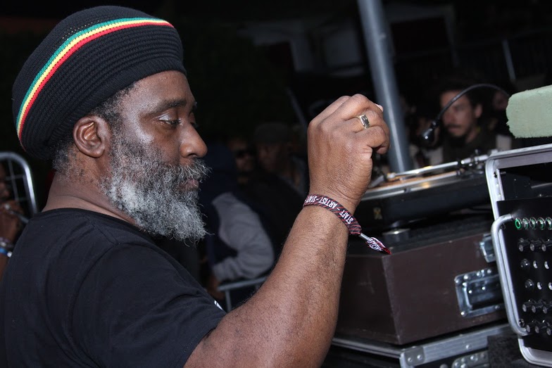 Y allá que fuimos a verlo … es casi mística la sesión de Shaka; todo estaba en orden, su plato arriba, sus ingentes cantidades de vinilos y su bandera de Selassie guardando sus espaldas. Y tune a tune nos iba recitando y haciendo que no parase nadie ni sentado en la grada. Big respect para esta leyenda una vez más.