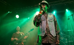Con el ambiente ya caldeado y la sala empezando a apretarse, un torbellino salta al escenario al ritmo y grito de “ blaze blaze blaze… burn babylon and dem dutty ways”. ¡¡ Puuull Uuup !! Se cae la Sala BUT, Junior Kelly está en la casa. Menudo profesional, todo un artista, no perdió fuelle en todo el show. Lo dio todo y su publico también, gran feedback entre arriba y abajo del escenario, Junior Kelly no se pudo ni resistir a cantarse algunas líricas a ras de suelo entre la gente… y se le veía bastante cómodo, no tuvo prisa en subir. Nos hizo bailar, gritar y sudar, les estaba dejando el ambiente muy calentito a los invitados estatales que venían a poner el broche a la noche. Mención especial a la backing band Fireman Crew que supo desenvolverse entre los muy dispares estilos que se estaban presentando sobre el escenario