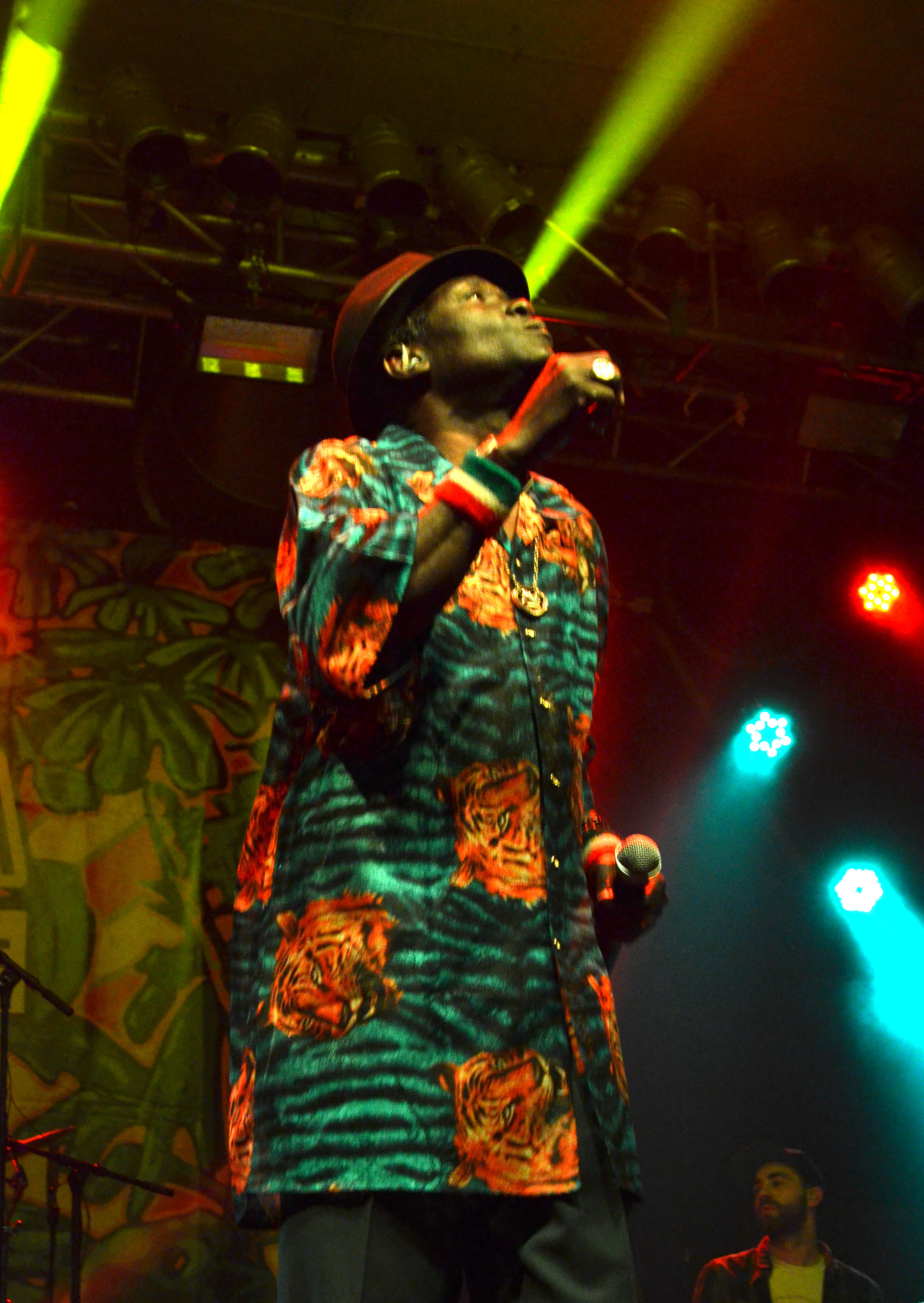 Salió el primer artista a escena, Junior Kelly que abrió el show entonando uno de sus temas más clásicos “Blaze” incendiando toda la sala y calentando rápidamente a un público que todavía estaba frio al haber llegado recientemente a la sala. Sin ninguna duda Junior Kelly es uno de los mejores artistas en directo de su generación, pura energía en acción, una voz fuerte y firme que no le falla en ningún momento y todo eso pudo demostrarse por ejemplo cuando el artista bajo del escenario y se metió entre el público sin perder el tono. Interpreto grandes clásicos como “Rasta should be deeper” o “Love so Nice” pero también canto algunos temas de su nuevo disco “Urban Poet”.