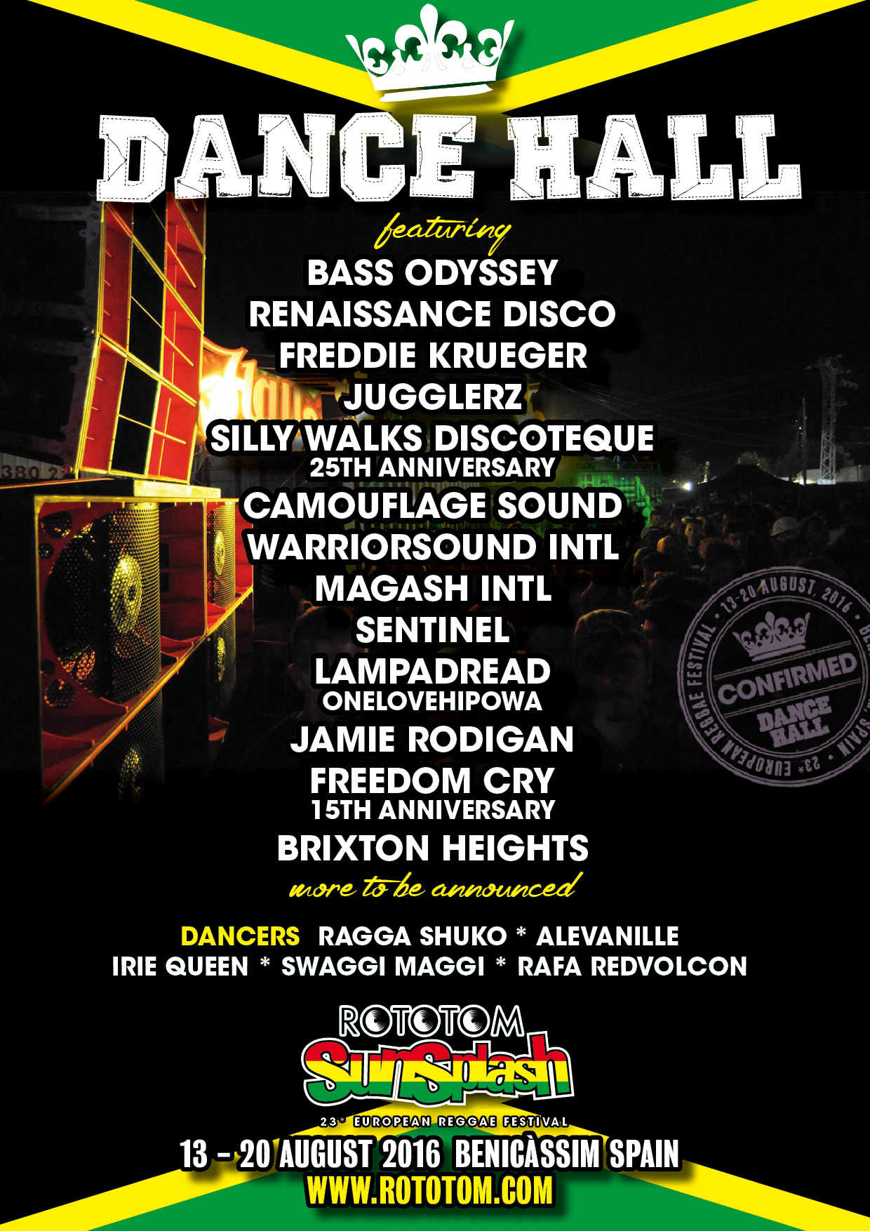 En el cartel podemos destacar varios de los sounds más reputados de la escena Dancehall mundial como Bass Odyssey, Freddie krueger, Silly Walks, Magash Intl y Warrior Sound Intl, que disputaron un reñido clash en Alemania hace unos meses, o Jamie Rodigan. También cabe destacar que el sound catalán Freedom Cry estará celebrando 15 años a los platos.