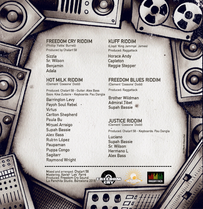 portada freddomcry webCon motivo de su 15 Aniversario, que celebran este año 2016, Freedom Cry ha preparado una sorpresa para toda la reggae massive. Una mixtape exclusiva, mezclada junto al productor y músico barcelonés Gerard Casajús aka Chalart 58. La mezcla se llama «Special 15th Anniversary Dubplate Selection» e incluye 5 tracks, todos mezclados en directo por el propio Chalart 58 en La Panchita Studio, con 28 dubplates y .