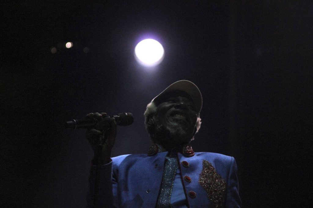 Solo habían pasado dos años desde su primera visita al festival en 2014 pero el regreso de Goran Bregovic era muy esperado por los ibogueros. Sentado y de blanco como la última vez, y acompañado por su orquesta de músicos y coristas caracterizados con trajes típicos de los Balcanes, Bregovic desató la locura nada más comenzar el concierto. Los bailes del público levantaban una humareda de polvo que se fue haciendo más grande conforme avanzaba. Sonaron temas del álbum Champagne por Gypsies pero el broche final lo pusieron “Bella Ciao” y “Kalasnjikov”. Horas antes el trío Blow inauguró el programa del escenario principal. Dos saxofones y una batería fueron suficientes para crear el sonido de una auténtica banda con guitarra y bajo incluidos. Su característica puesta en escena con máscaras dejó todo el protagonismo a la música. A continuación la canadiense Tia Brazada sedujo al público con su voz melódica y sensual. Ataviada como una estrella pin-up, boa de plumas y gafas de sol de gato incluidas, invitaba a seguir el ritmo de su repertorio de jazz swing que fue in crescendo hasta alcanzar ritmos cercanos al charlestón. La formación franco-alemana Äl Jawala cambió de registro con su sonidogypsy de fondo electrónico, conseguido solamente con metales, percusión y saxofones. “Wake up”, el primer tema de su último disco Hypnophonic con reminiscencias al sonido Bollywood, daba comienzo a su actuación. Sin embargo, el momento de mayor conexión con el público se produjo cuando los músicos se reunieron en corro en la arena mientras seguía el concierto.