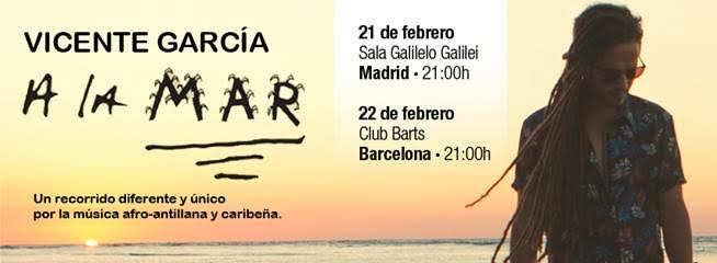 Vicente García estará en España presentando “A la Mar” en formato trío, el 21 de febrero en Madrid, en la sala Galileo Galilei y el 22 de febrero en Barcelona, en Club Barts.