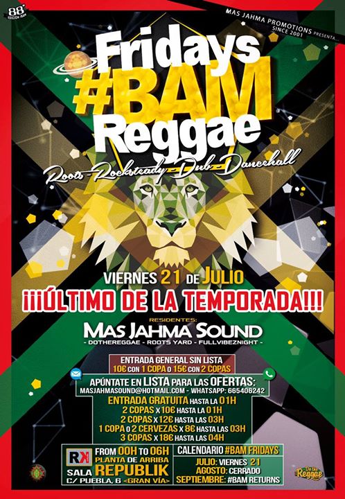 La propuesta musical para esta noche tan especial estará dirigida por , quienes realizarán su última sesión en la ciudad antes de emprender su viaje a Rototom. Ya sabéis, ellos son los responsables de la  Yard en el festival y los ilustres residentes de los mejores viernes de reggae en Madrid