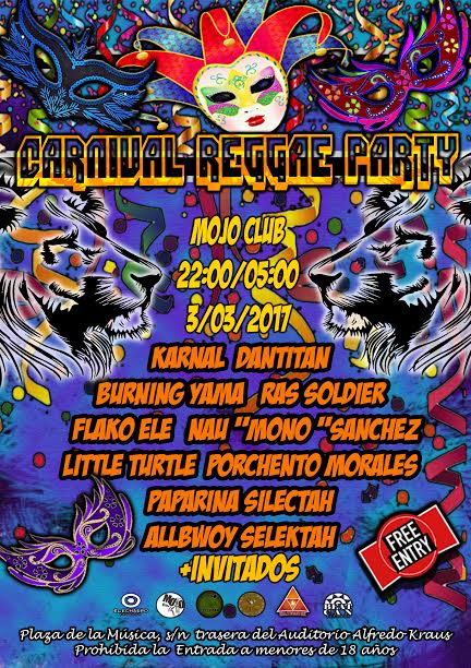 Carnival Reggae Party el 3 de Marzo en Mojo club (Las Palmas de Gran Canaria)