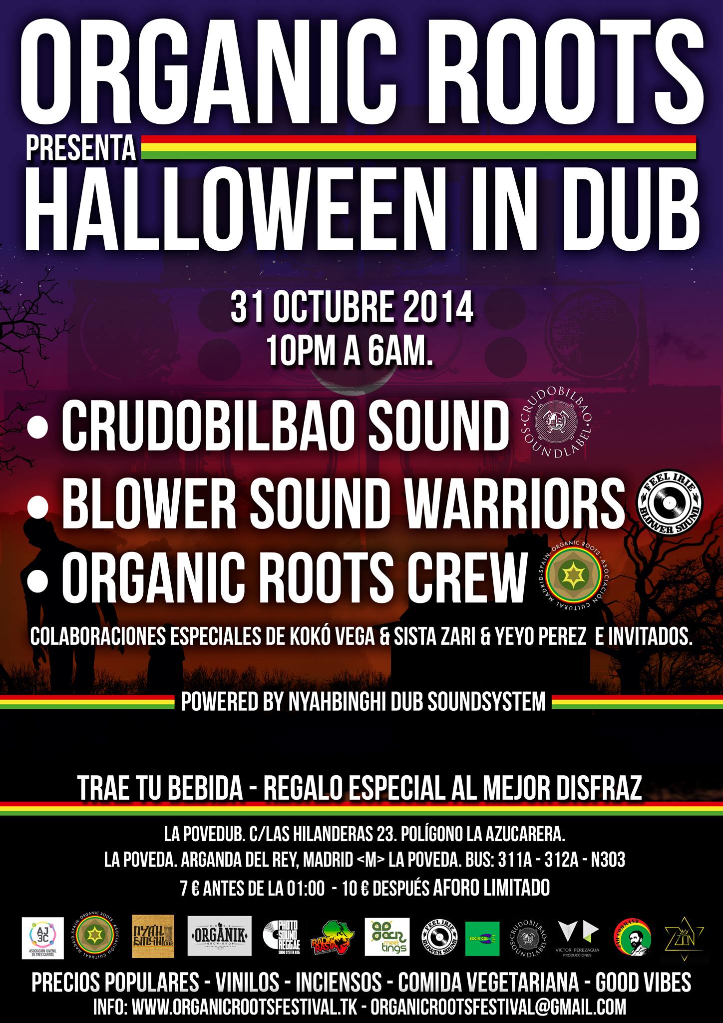 HALLOWEEN-ORGANIC-ROOTSOtro año más se acerca el Halloween más lleno de de la península. Esta vez con invitados que vienen directamente desde el norte: Crudobilbao Sound.