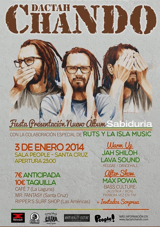chando El próximo 3 de enero Ayatimas Reggae tiene el placer de invitarles a partir de las 23:00 horas a la presentación oficial del segundo trabajo discográfico de Dactah Chando que tiene por título “ SABIDURÍA”.