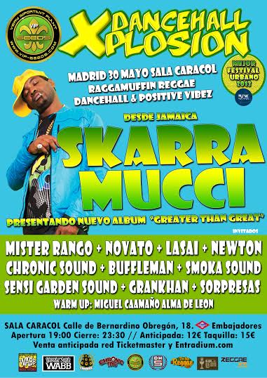 Dancehall Xplosion presenta Skarra Mucci en Madrid. 30 de Mayo