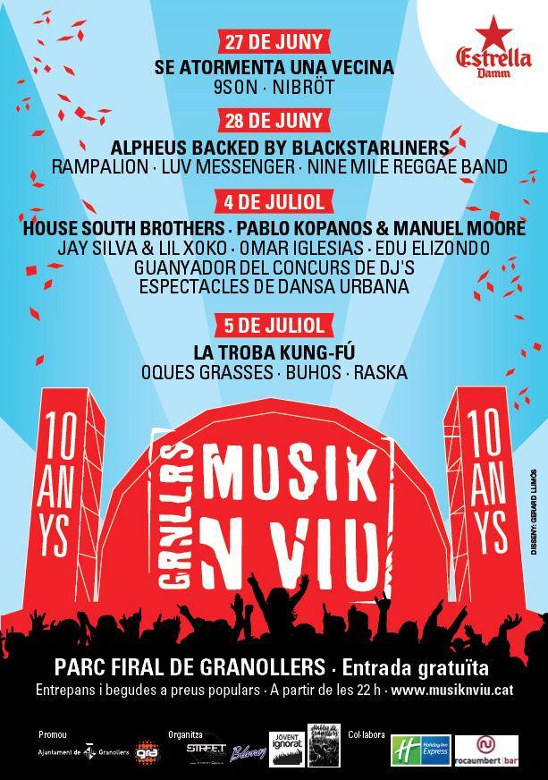 Vuelve una nueva edición del Festival Musik N Viu de Granollers, y ya van 10. Cuatro días de conciertos al aire libre con una variada temática musical y, como viene siendo habitual, con un dia dedicado a los sonidos jamaicanos.