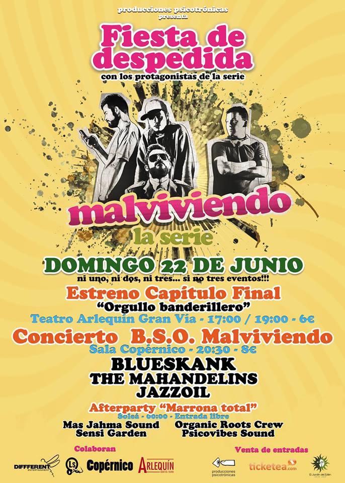 malviviendo-despedidaLa mundialmente aclamada webserie «Malviviendo» llega a su fin y para homenajear estos 5 años de exitosa trayectoria Producciones Psicotrónicas organizará un evento el 22 de Junio en Madrid para que los fans y seguidores puedan despedirse de sus creadores.