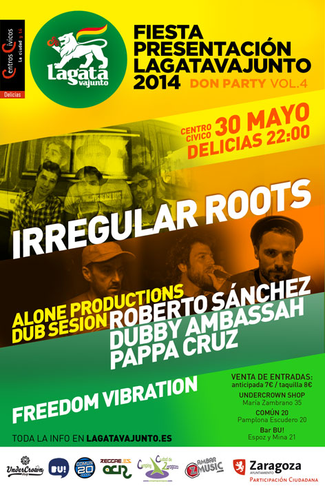 Demostrando que el reggae se mueve a un gran nivel en Zaragoza nos llega la cuarta edición de Don Party, fiestas que sirven de trampolín al festival Lagatavajunto y que tienen unos altos valores de producción si atendemos a nombres, esta vez el cartel es de autentico lujo: