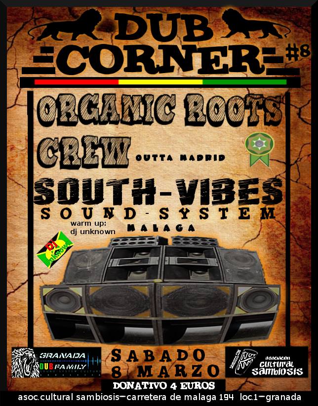Organic Roots  es una asociación cultural madrileña muy comprometida con el escenario dub español. Muchos les conocen por las noches de sound-system de la capital donde ya colaborado con los mejores artistas internacionales y por el potente sound-system de Nyahbinghi Dub que patrocina estas fiestas pero sobre todo por el Dub más importante de la península, el Organic Roots , donde colaborado con artistas del tamaño de Stand High Patrol y Pupajim, Bush Chemist o Soom-t y entre otros… que estaràn presentando en el DUB CORNER del 8 de marzo junto a su primer vinilo… Un trabajo excelente mixado por los franceses de y cantado por Easton Clarke… Todo un honor poder bailar sus temas!!