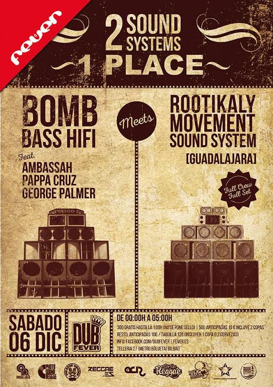 Dub Fever presenta: Bomb Bass HiFi Meets Rootiklay Movement Sound System. Sábado 6 de Diciembre en Bilbao