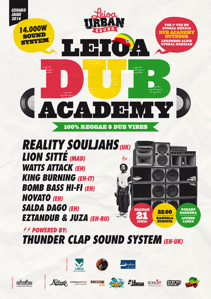 Leioa-Dub-AcademyPor primera vez en Euskal Herria se presenta Leioa Academy, este formato al aire libre y de acceso gratuito con motivo de las fiestas municipales de Leioa.