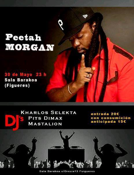 Llega a Figueres uno de los mejores cantantes jamaicanos de todos los tiempos para hacernos divertir con sus mejores temas!!!y antes de su concierto tendremos a los mejores deejays de la costa brava como son Pits Dimax y Kharlos Selekhta y el mejor deejay de Finlandia que se llama Mastalion!!!vamos a disfrutar con el dancehall y reggae. También contaremos con la actuación de Ghetto Solja, quien se encargara de dar la bienvenida a Peetah Morgan.