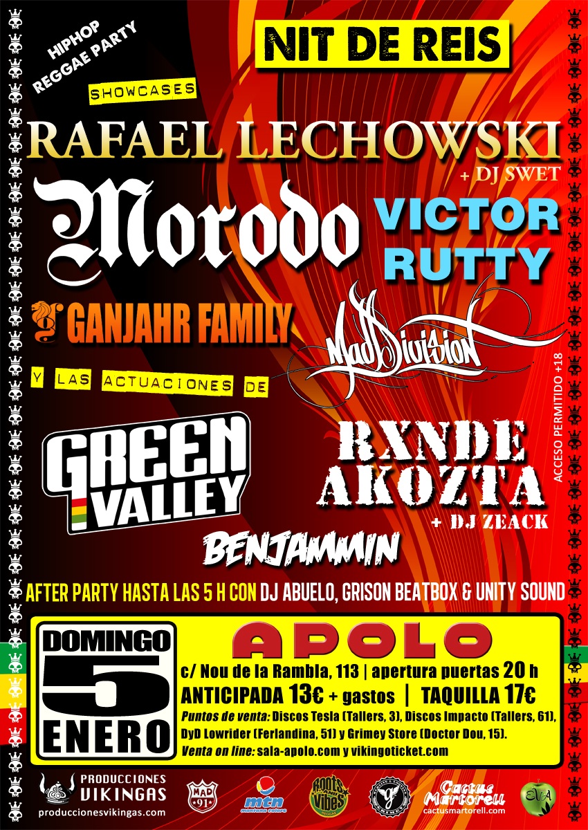Festival Nit de Reis en la Sala Apolo con Morodo, Ganjahr Family, Mad Division y Benjammin entre otros. Ven por solo 10€ con tu ACR Card