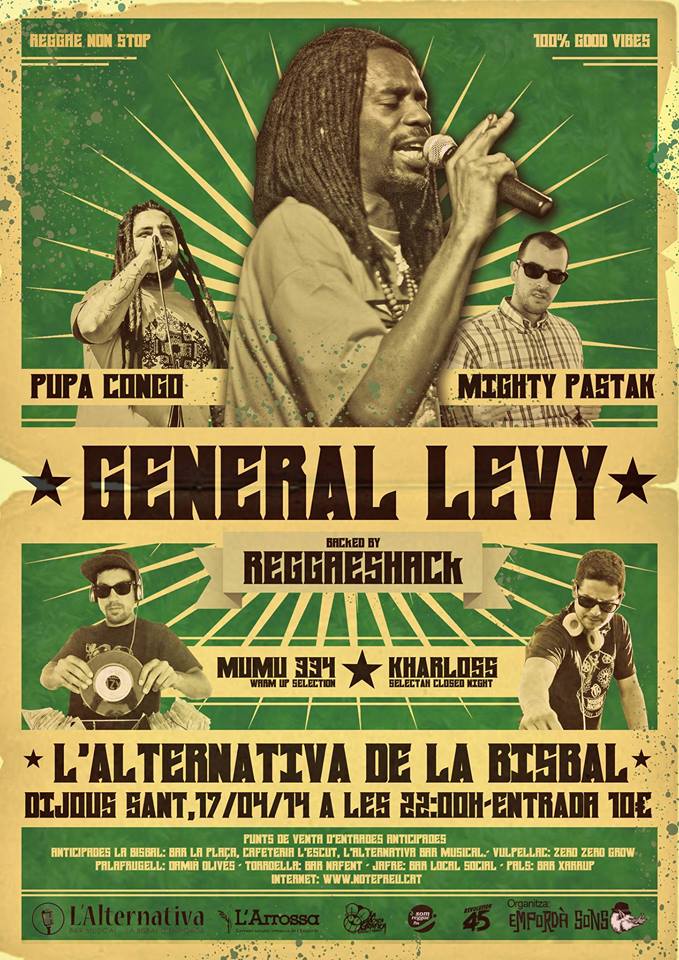 El próximo Jueves Santo, viajará de Londres a La Alternativa. Bar musical de La Bisbal, para presentarnos su show acompañado de Reggaeshack, Kharloss Selektah, Mumu 334, Pupa Congo y Mighty Pastak.