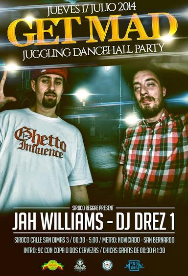 Bajo el nombre de Get Mad Party tendremos una sesion 100x 100 juggling con de Kachafyah y el Jah Williams de Sound.