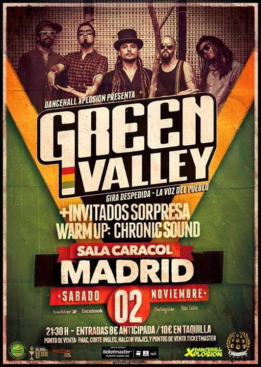 La banda Green Valley al completo hará el concierto fin de la gira de La Voz del Pueblo en la Sala Caracol de Madrid, y para tan especial ocasión contará con colaboraciones invitadas al micro.