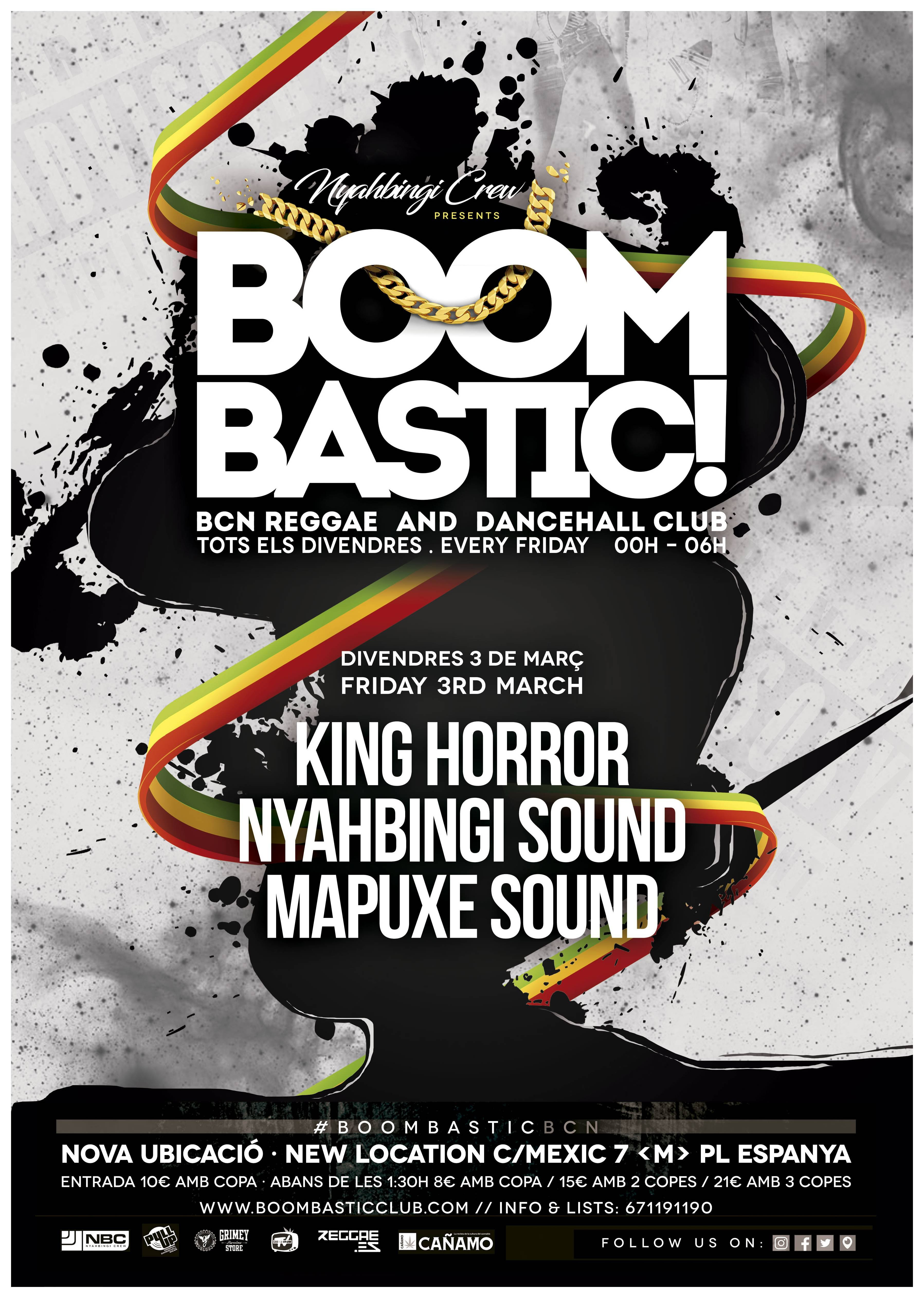 King Horror, Nyahbingi Sound y Mapuxe Sound en Boombastic, 3 de Marzo en Mexic, 7 (Barcelona)