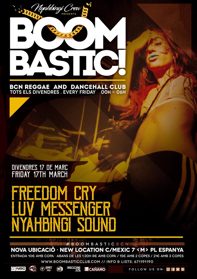 Luv Messenger, Freedom Cry y Nyahbingi Sound el 17 de Marzo en Boombastic (Barcelona)