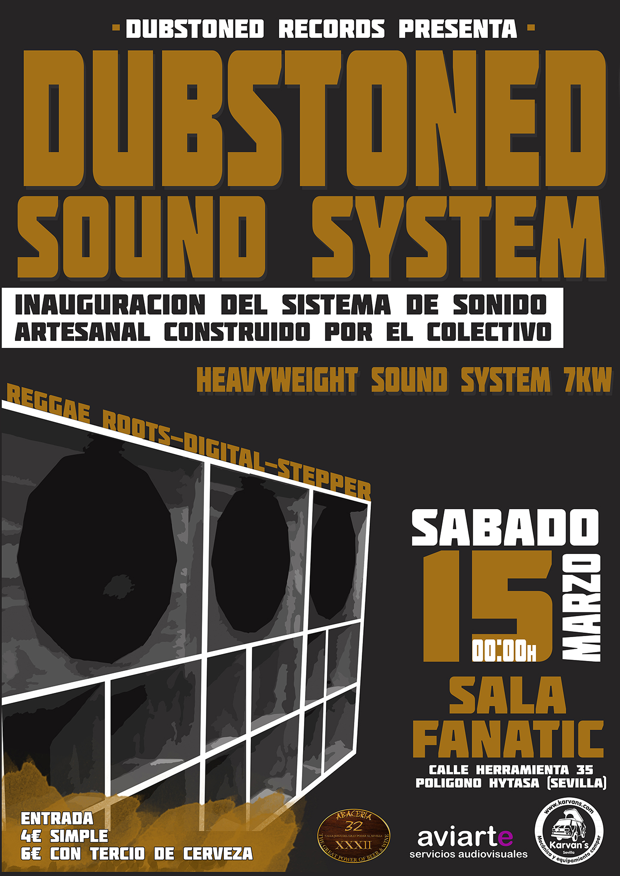 dubstoned es el año oficial de la puesta en marcha de un proyecto que viene gestándose varios años atrás; os presentamos a como una idea común que comparten varios artistas, djs y técnicos de sonido que, después de mucho tiempo de trabajo, presentan al público un equipo de sonido de gran potencia, construido por ellos mismos de forma artesanal, respetando los diseños de cajas y de construcción de los grandes sound systems ingleses extendidos desde hace décadas por toda Europa.  El sistema de sonido que presentan consta de materiales, altavoces y electrónica de alta gama, además de contar con el corazón del sound system: el preamplificador Annihilator an4 de Jah Tubbys para echar a andar este autentico Heavyweight SoundSystem 7kW en una noche mágica de Roots reggae, Digital y Stepper.