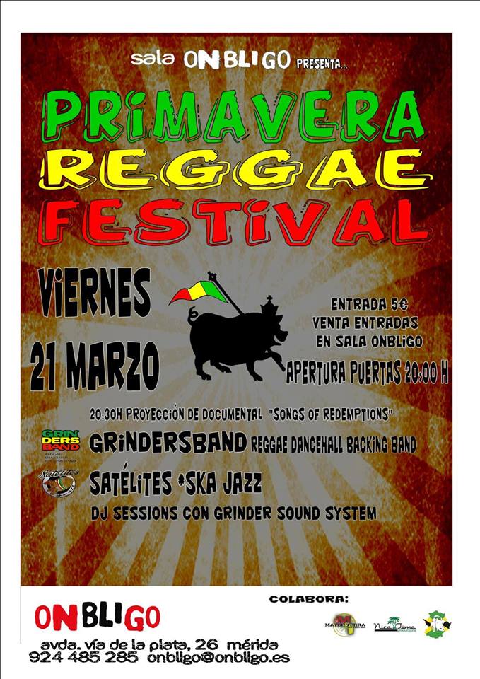 onbligo-primavera-reggaePara saludar por fin a la primavera y al buen tiempo este Viernes en Mérida no te puedes perder una de las citas del año para el Extremeño y es que actuarán de Grindersband, una de las bandas con más solera de la zona y bien conocida en los circuitos de la península junto a una banda de reciente formación, Los Satelites Ska Jazz, que harán las delicias del respetable con versiones del mítico grupo Skatalites, composiciones que todos los aficionamos conocemos y que conseguirán que no puedas parar de moverte.