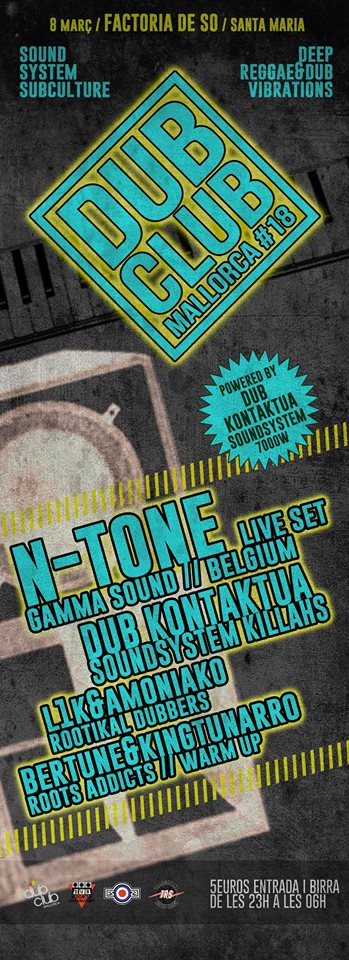 dub-club-mallorcaOtra edición más de las fiestas DUB isleñas.. siempre con mucho reggae roots, dub, uk dub y sobretodo stepper.. se pone las pilas y viene con una edición cargada de novedades, a parte del show sonoro con el de los Dub Kontaktua también vuelve el Mercadubillo con las creaciones artísticas mas alternativas y algo de segunda mano.