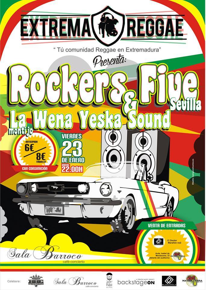 Ya tenemos cita reggae el Viernes 23 de Enero en CÁCERES con la banda andaluza «Rockers Five» y la sound system montijana «La Wena Yeska Sound«. En Sala Barroco
