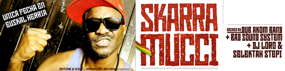 Última fecha de Skarra Mucci en el estado con el backing de Dub Akom. La noche del 26 de Noviembre en la Sala Jimmy Jazz de Gasteiz, junto a Bad Sound System. Sesión afterparty de Dj Loro y Selektah Stepi.