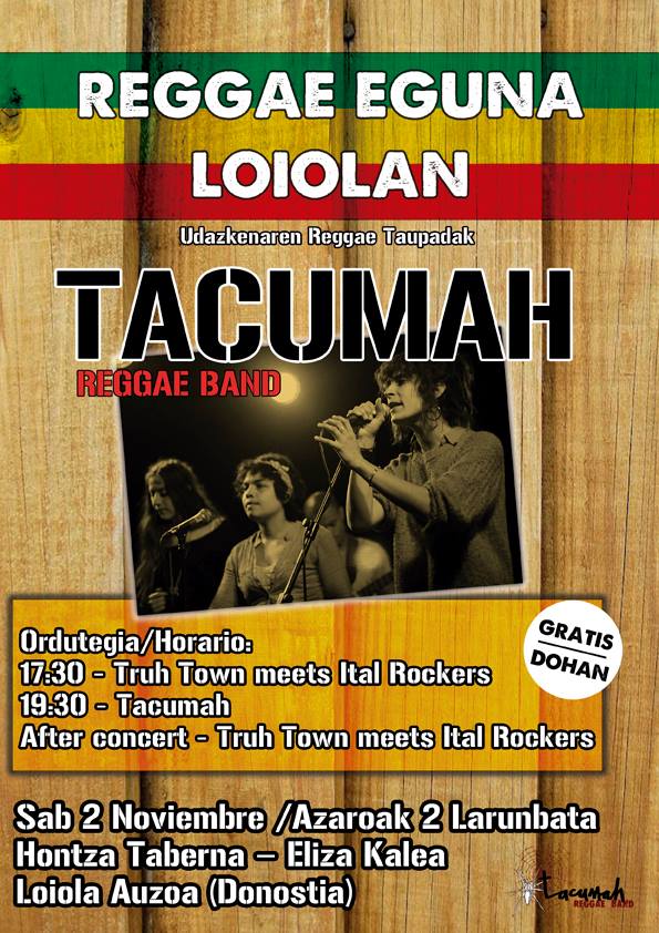 Tacumah Reggae Band en concierto (Donosti) 2 de Noviembre