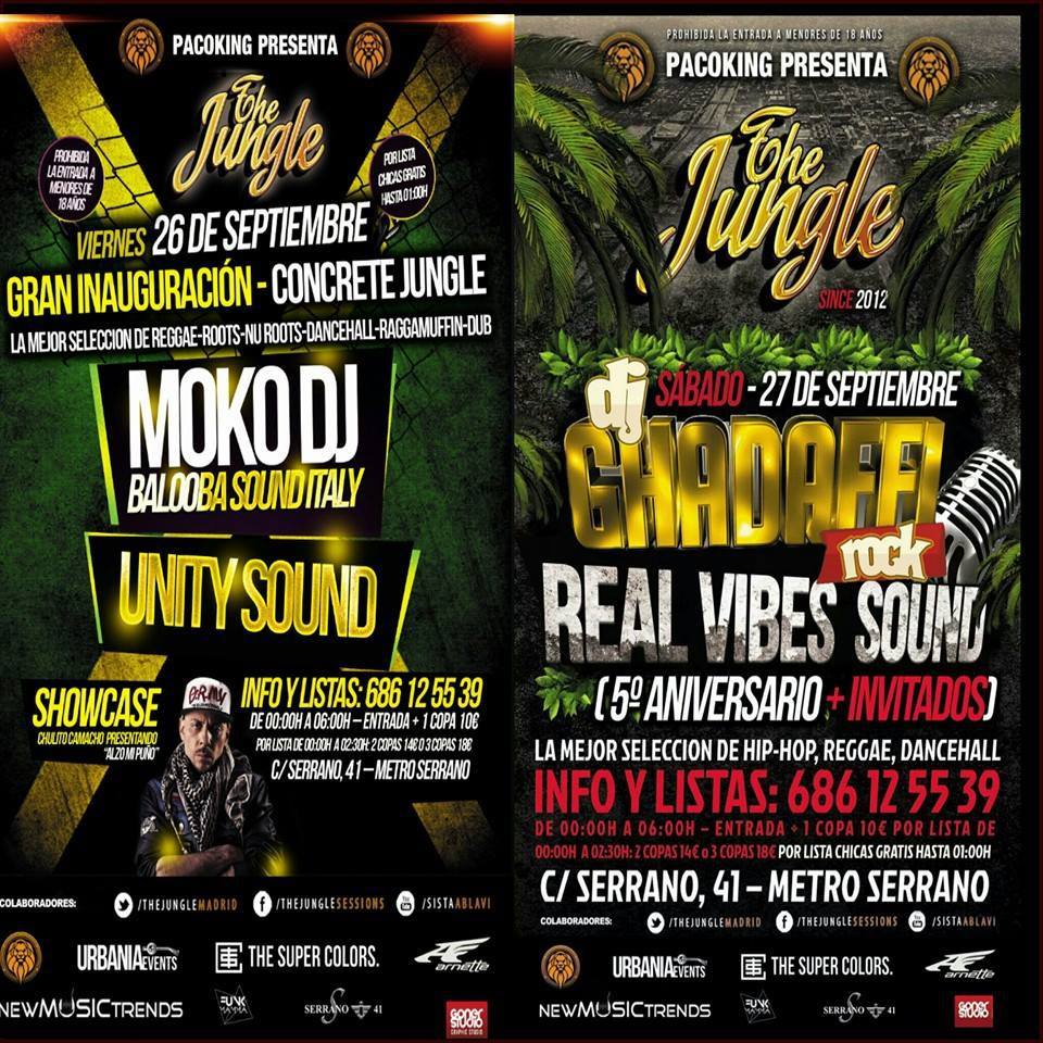 the JungleVisto el enorme éxito de Sessions, los organizadores decidido incluir un nuevo formato los viernes, llamado Concrete Jungle. Este viernes tendremos Showcase de Chulito Camacho y sesiones de Sound y de los italianos Balooba Sound. El Sábado las habituales The Jungle Sessions; esta vez con DJ Ghadaffi yReal Vibes Sound.