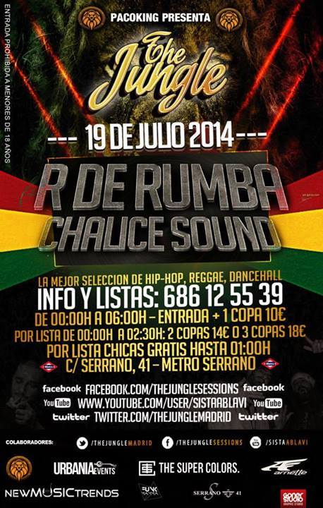 the JungleNueva entrega de The Jungle Sessions, tu fiesta de Hip Hop, Dancehall, y Jungle en la Capital.  Para este Sábado no te puedes perder la visita de  Sound y R de Rumba el mítico productor de Violadores del Verso.