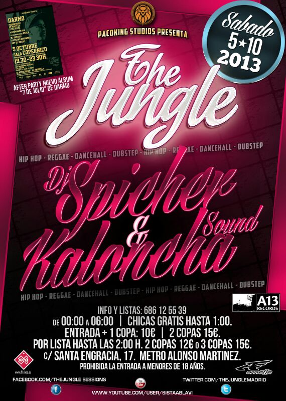 KalonchaUna semana más, un Sábado más tenemos sesion en The Jungle con todos los estilos de música desde el hip hop al Dubstep pasando por el y Dancehall. Para el Sábado 5 Dj Spicher y serán los invitados a la jungla, no te lo pierdas.