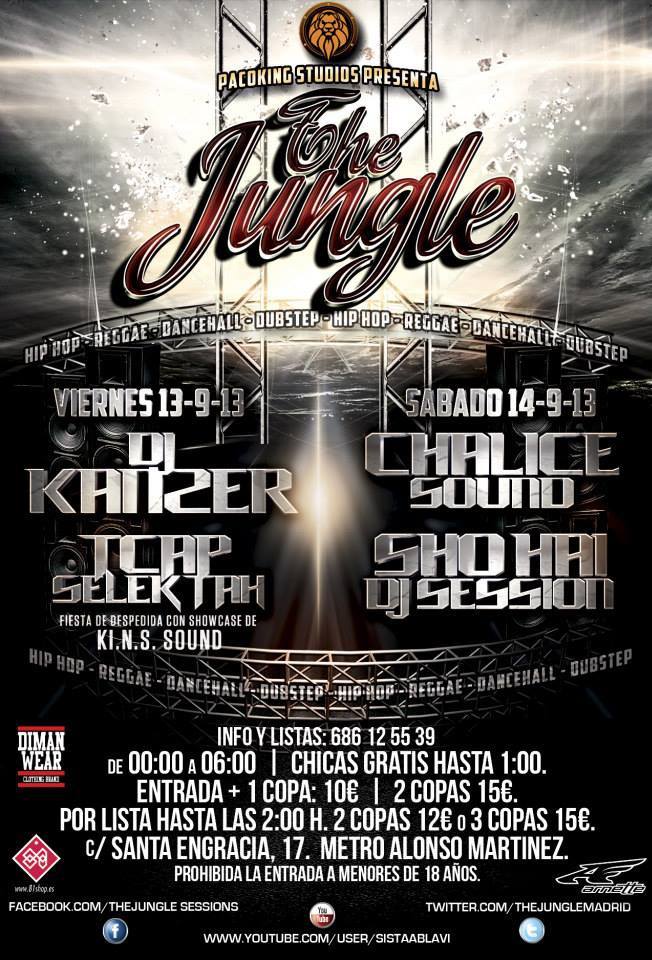 the jungle sessionVuelve Sessions este viernes 13 de Septiembre con DJ Kanser y T-Cap Seleckta, quien prepara su fiesta de despedida con un Showcase de la banda , emotiva despedida a la que no podéis faltar.
