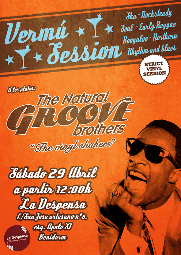 The Groove Brothers tienen el placer de anunciar la Vermú Session que se celebrará el próximo Sábado 29 de Abril a partir de las 12:00h. en La Despensa (C/ San José Artesano nº8, esquina Apolo XI, Benidorm). Podrás disfrutar de las mejores cervezas artesanas, vinos y tapas a ritmo de soul, ska, boogaloo, early reggae, funk y rhythm and blues, en estricto vinilo. Entrada gratuita.